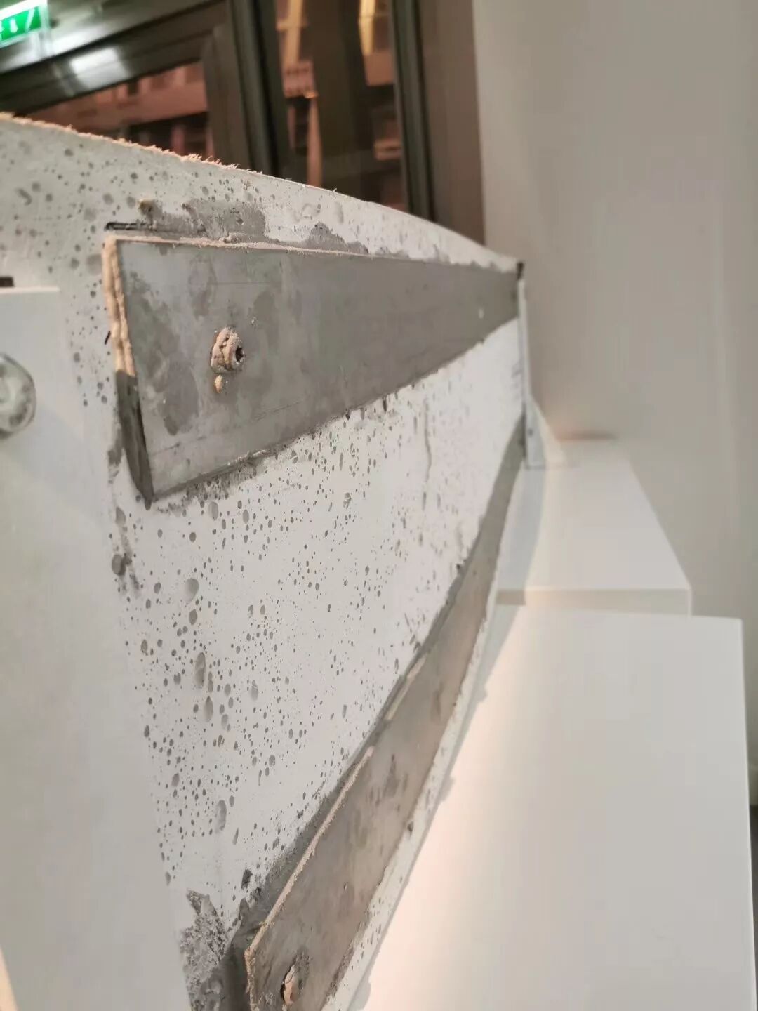 整个项目采用了3,600块长三角形面板,通过三个固定点与主框架连接。建筑师要求屋面防水,屋面板块2.4m宽、9m长、35mm厚,Ductal预制板内嵌入20-27%的玻璃,同时在板块预制过程中浇注两条16cm厚的肋。而由于UHPC具有非常高的抗弯强度,屋面板块因此可以设计得纤细,甚至实现了8-9m的悬挑。在预制生产前建筑师与拉法基豪瑞团队以及预制工厂进行了一系列综合的测试和评估,通过预制的工艺,保障了吉博恩茵体育场非常高的表面质量,同时颜色一致无误差。